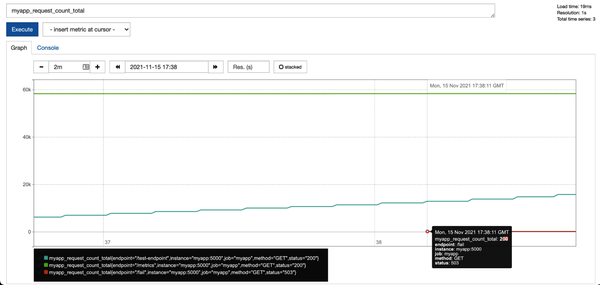 myapp_request_count_total{endpoint="/test"}226myapp_request_count_created{endpoint="/test"}163myapp_request_bounce_total{endpoint="/test"}440