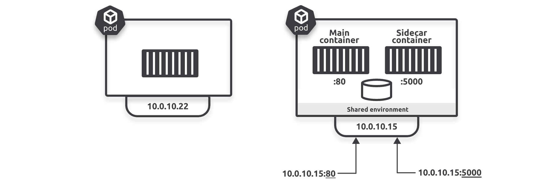 56. You have an application and a helper service that need to be able to share data. Which Kubernetes object provides shared volumes and co-locates workloads?