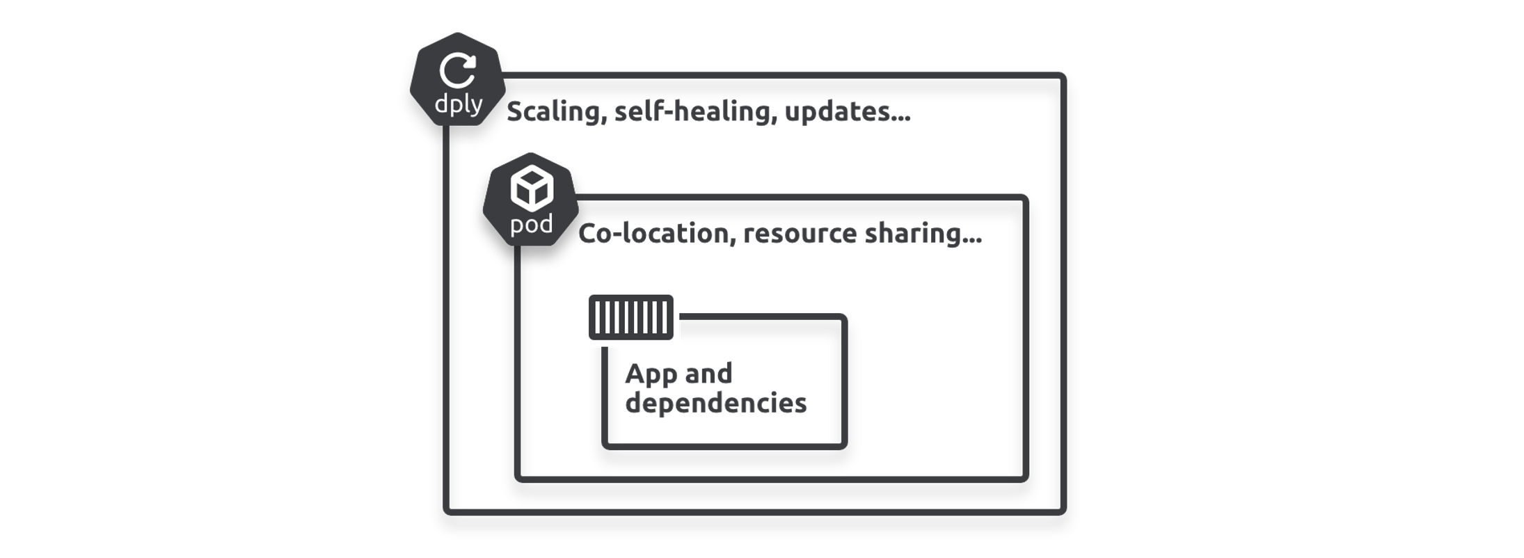 A major innovation, enabled by containers, is the microservices design pattern where large complex applications are broken up and each application feature is developed and deployed as its own small, single-purpose, application called a microservice. This architecture enables cloud native features such as, self-healing, scaling, regular and repeatable rollouts, and more.