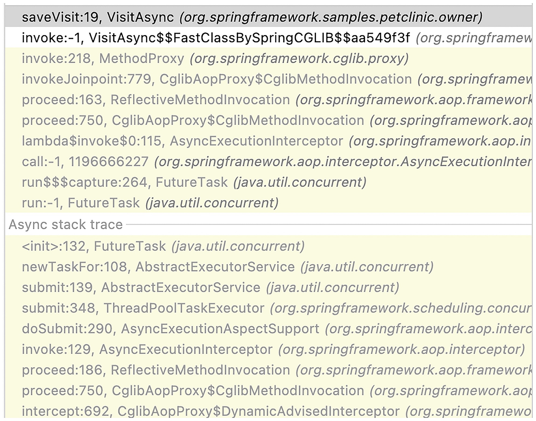 An asynchronous operation disconnects the stack trace and removes our ability to follow the chain of causality. As a result, when we stop at a breakpoint in an asynchronous callback, we might get a very short stack trace that doesn’t help by much.