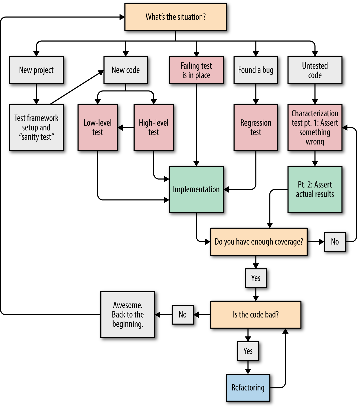 I still remember reading Martin Fowler’s book Refactoring: Improving the Design of Existing Code when it came out in 1999. It was a revelation: I had never before seen code being considered to be something malleable. Programmers tend to have the urge to rewrite code bases from scratch, but this book argued that it is possible to evolve and clean up existing code via small, principled, and comparatively safe steps. While doing so, tests provide an additional safety net and enable you to move forward with confidence. One piece of advice from the book will always stick with me—whenever you code, always keep two kinds of activity completely separate: implementing new functionality and refactoring existing code. If you do that, you’ll avoid doing too many things at the same time and will produce less bugs.