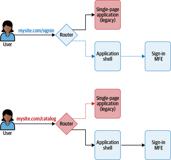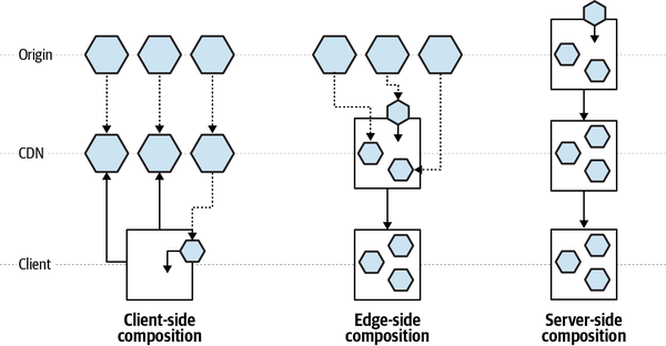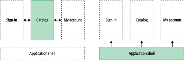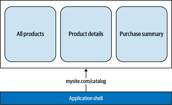Single-page applications (SPAs) consist of a single or a few JavaScript files that encapsulate the entire frontend application, usually downloaded up front. When the web servers or the content delivery network (CDN) serves the HTML index page, the SPA loads the JavaScript, CSS, and any additional files needed for displaying any part of our application. Using SPAs has many benefits. For instance, the client downloads the application code just once, at the beginning of its life cycle, and the entire application logic is then available up front for the entire user’s session.
