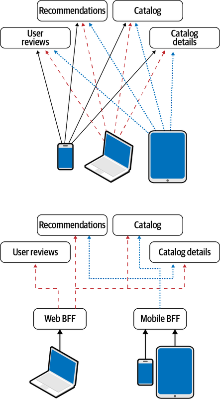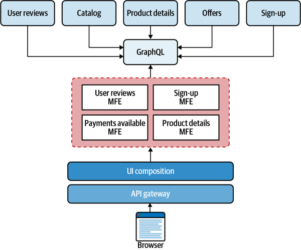 Because they were describing a new phenomenon, Fowler and Lewis necessarily predicted a few things, including the impact microservices would have on user interface design. They observed that one of the defining features of microservices is the decoupling of services, and they predicted that architects would partition user interfaces to match the level of decoupling.