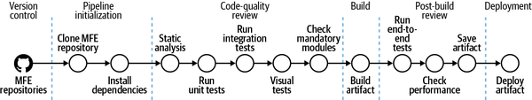 I think a solid CI/CD pipeline is essential. In a micro-fronted architecture, most of the complexity moves from a developer’s machine to the build-and-deployment process. Thus, a feature in such an architecture is delivered once it’s deployed to production, not once it’s committed to the version-control system. All the tooling should support and align with this thinking.