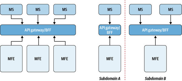 Avoid introducing a monolithic layer somewhere else in your stack, because you lose most of the benefits from micro-frontends. Micro-frontends work best with microservices.