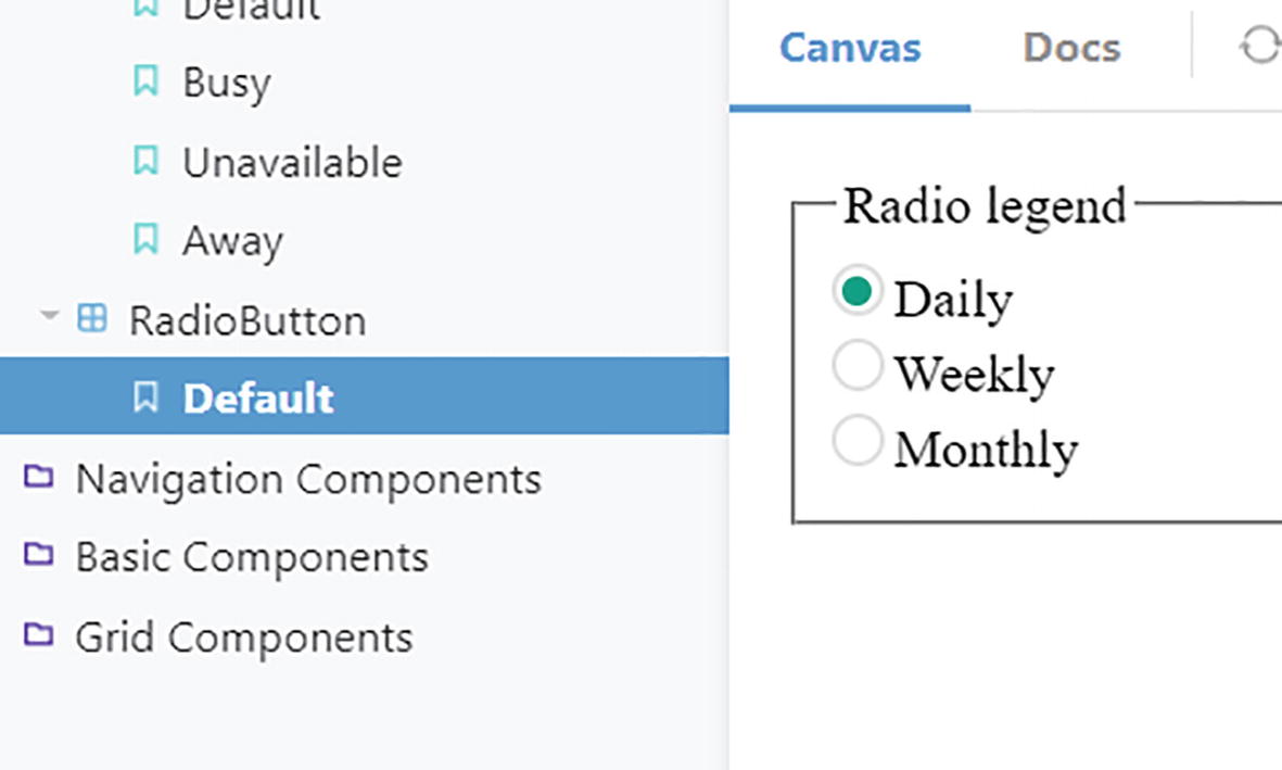 That aside, you will notice that this time around, we’ve used a different format to host our Storybook page for RadioButton. There are some similarities to what we’ve done before, but they are equally diverse enough that we should take a moment to digest the changes made in that demo, in more detail.
