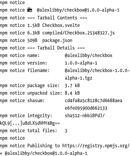 To publish the component on NPM, we will also need an account – you can sign up for one at www.npmjs.com/signup if you don’t already have one.