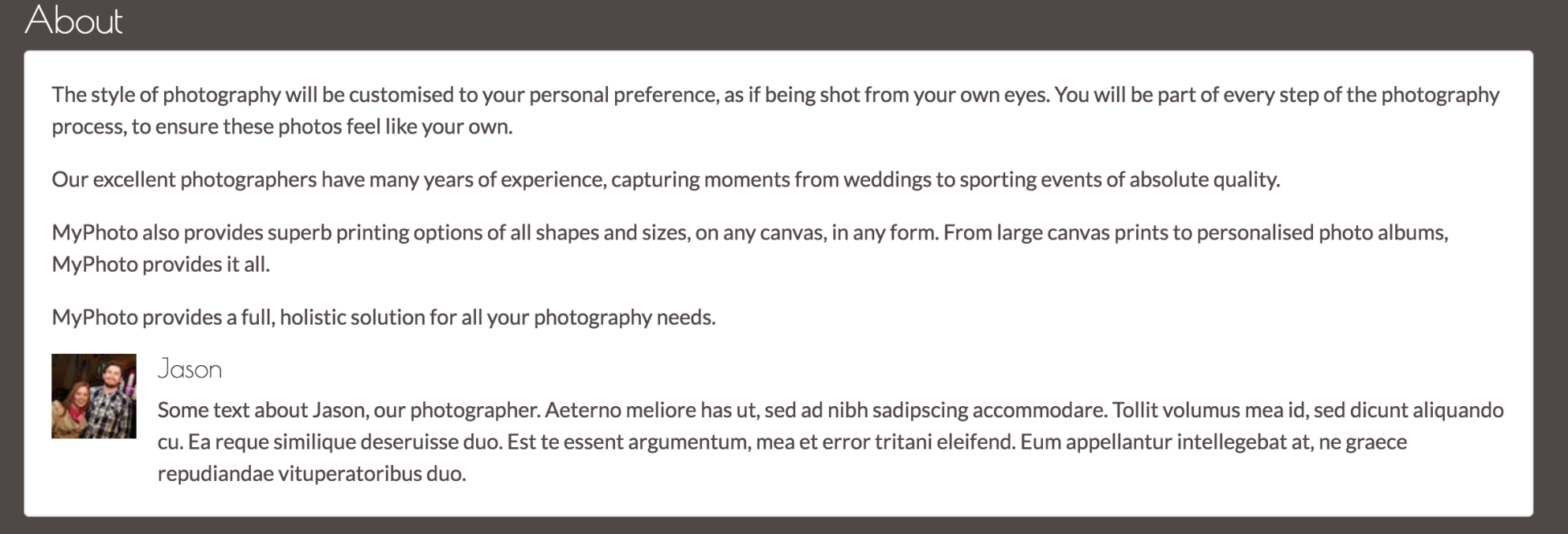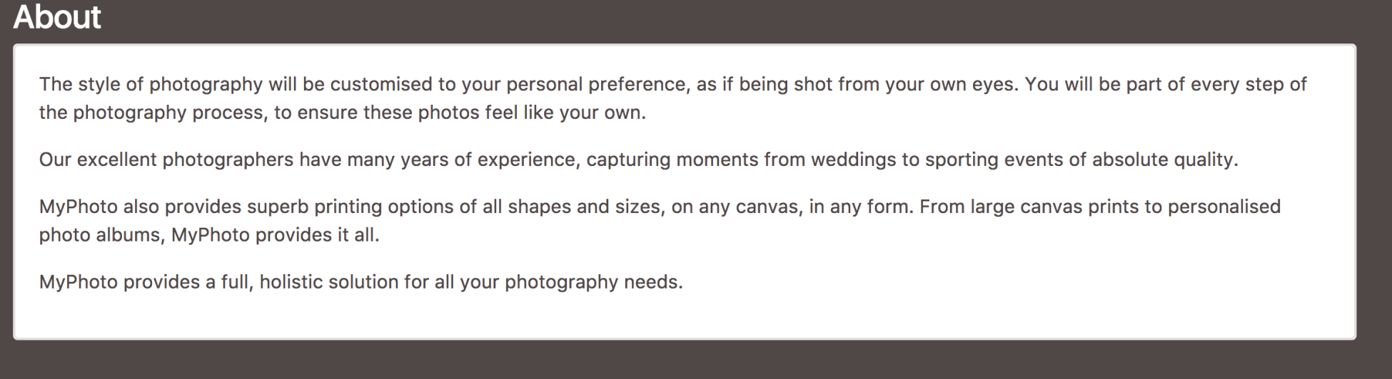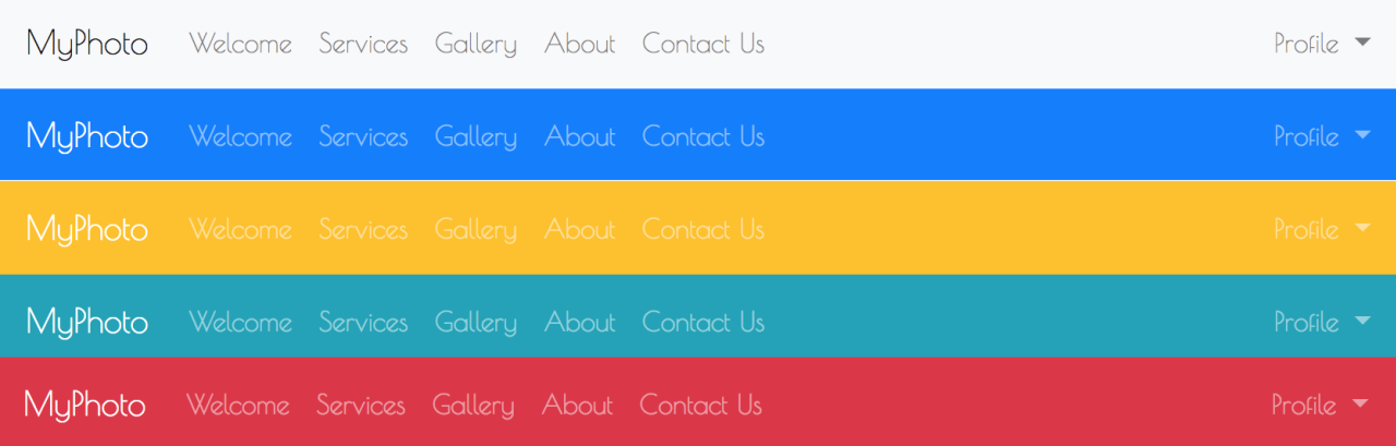 Now that you have glimpsed a brief overview of MyPhoto, let's examine Bootstrap 4 in more detail and discuss what makes it so different from its predecessor. Take a look at the following screenshot: