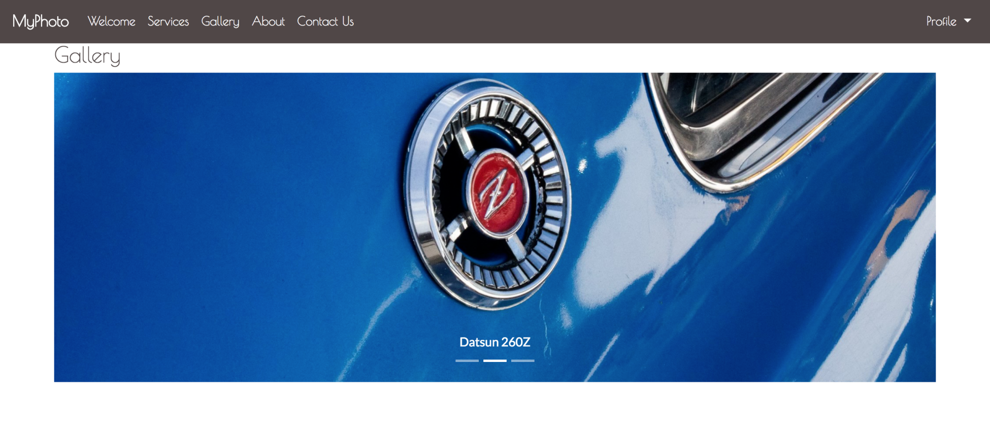 As you can see from the caption, the carousel is loading from the imagesCarousel array. Now we have a customizable, reusable, and easily maintainable React-powered carousel component that can be used anywhere across MyPhoto.