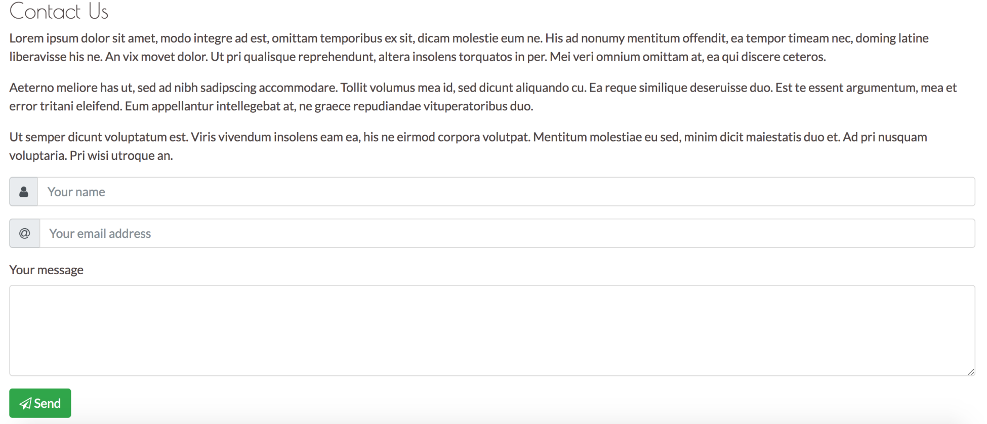 Following on from the Services section, you will need to use rich imagery to really show off the website's sample services. You will achieve this by mastering Bootstrap's responsive core along with Bootstrap's carousel and third-party jQuery plugins. Last but not least, the Contact Us section will demonstrate how to use Bootstrap's form elements and helper functions—that is, you will learn how to use Bootstrap to create stylish HTML forms, how to use form fields and input groups, and how to handle the display of data validation results.