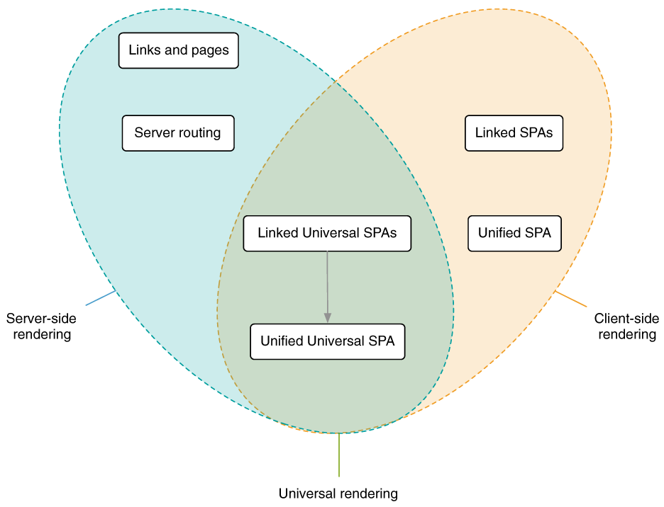 universal unified single-page apps (SPAs) 154-155, 161