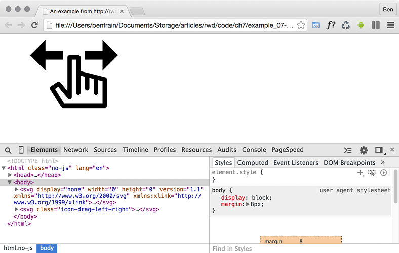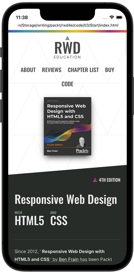 Chapter 1, The Essentials of Responsive Web Design, is a whistle-stop tour of the key ingredients in coding a responsive web design.