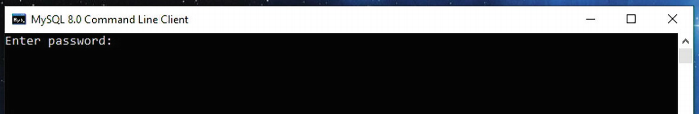 A screenshot represents the screen of the My S Q L 8.0 command line client. The field to enter a password is indicated on the screen.