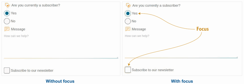 :focus-visible pseudo-class 172, 301 – 302, 314
