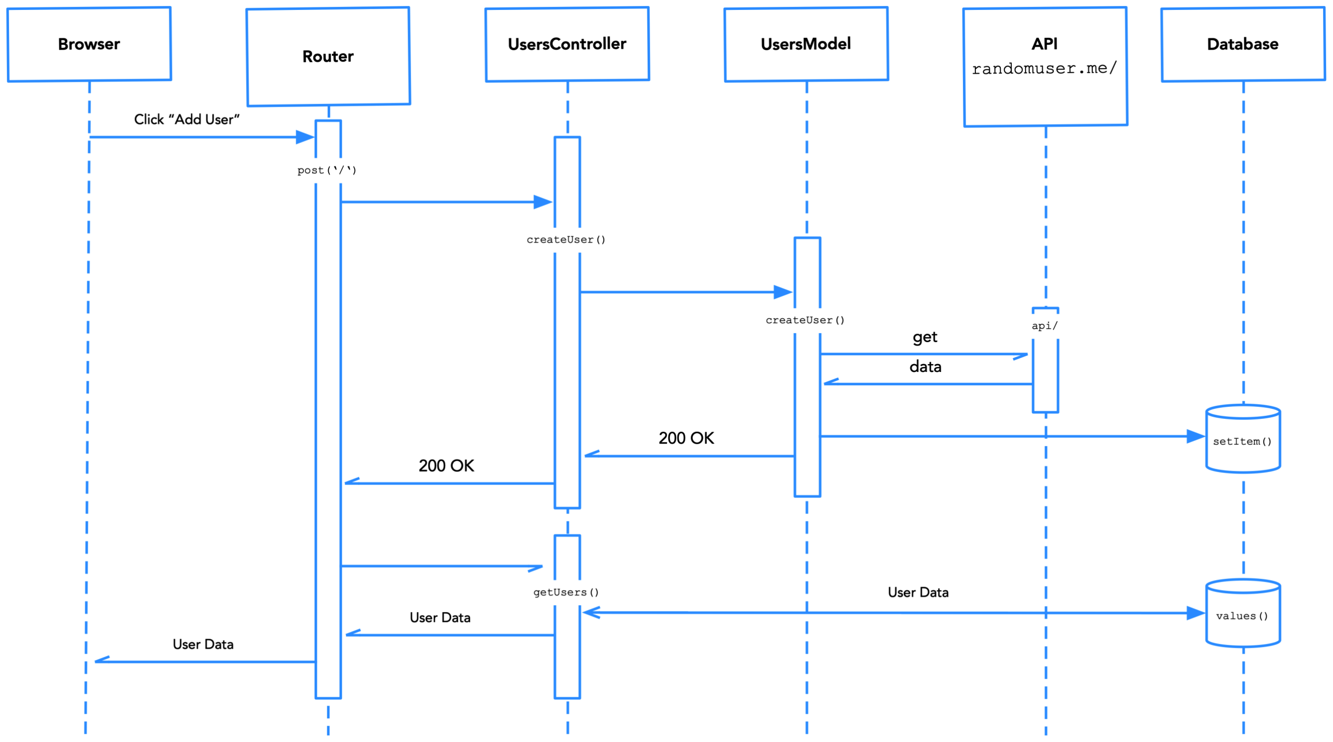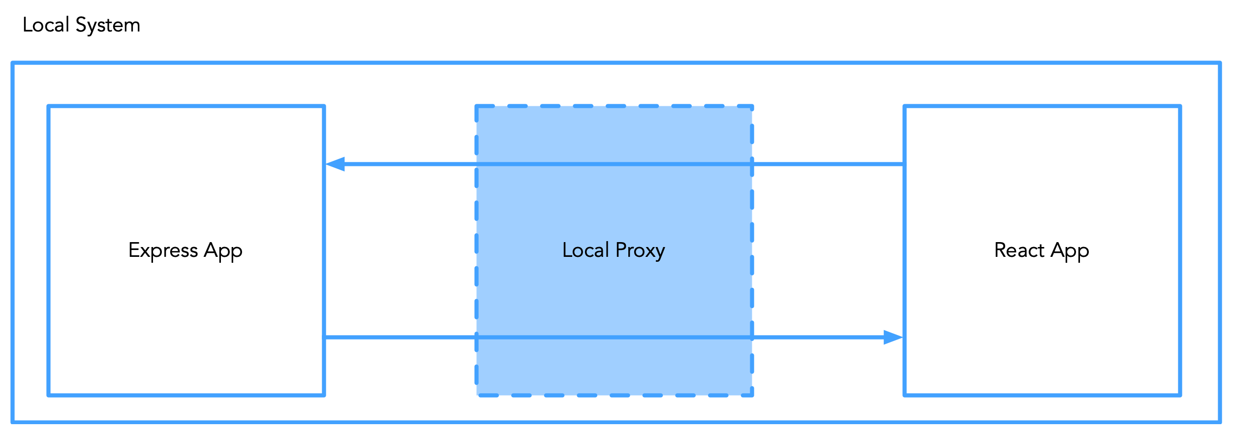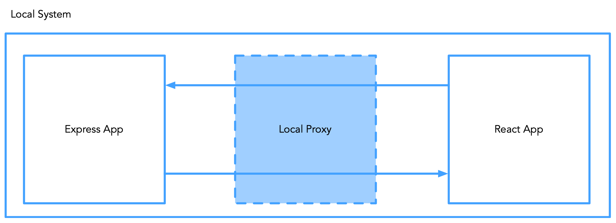 Because we're using a React frontend, we'll revisit the idea of using Express as a backend with React proxying our API requests, as follows: