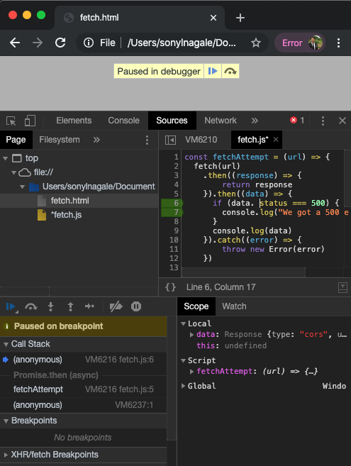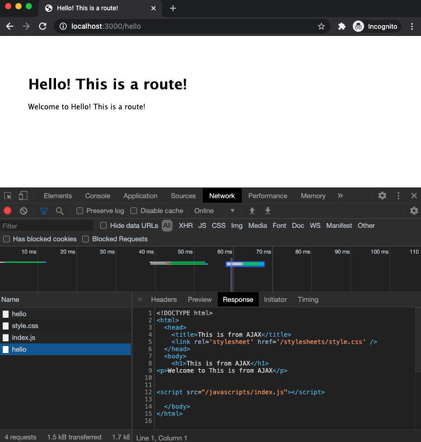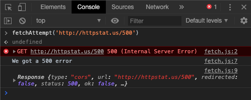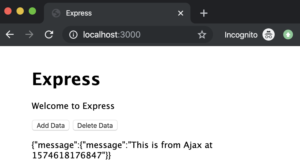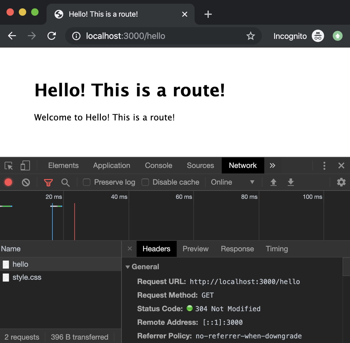 This very basic fetch call should call the routes/index.js component's get method in our API: