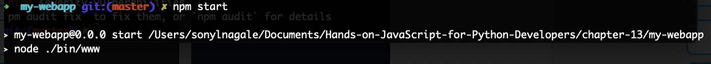 The code bundle for the book is also hosted on GitHub at https://github.com/PacktPublishing/Hands-on-JavaScript-for-Python-Developers. In case there's an update to the code, it will be updated on the existing GitHub repository.