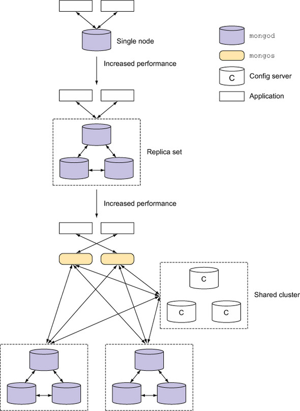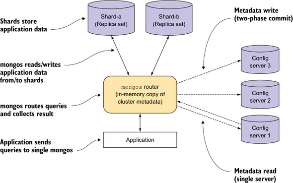 Figure 12.1. Components in a MongoDB shard cluster
