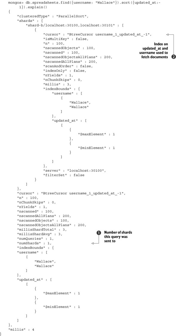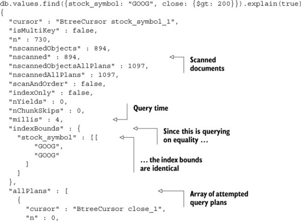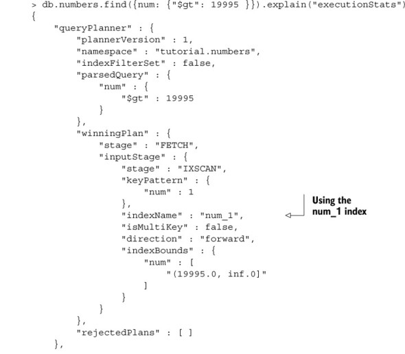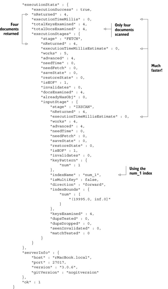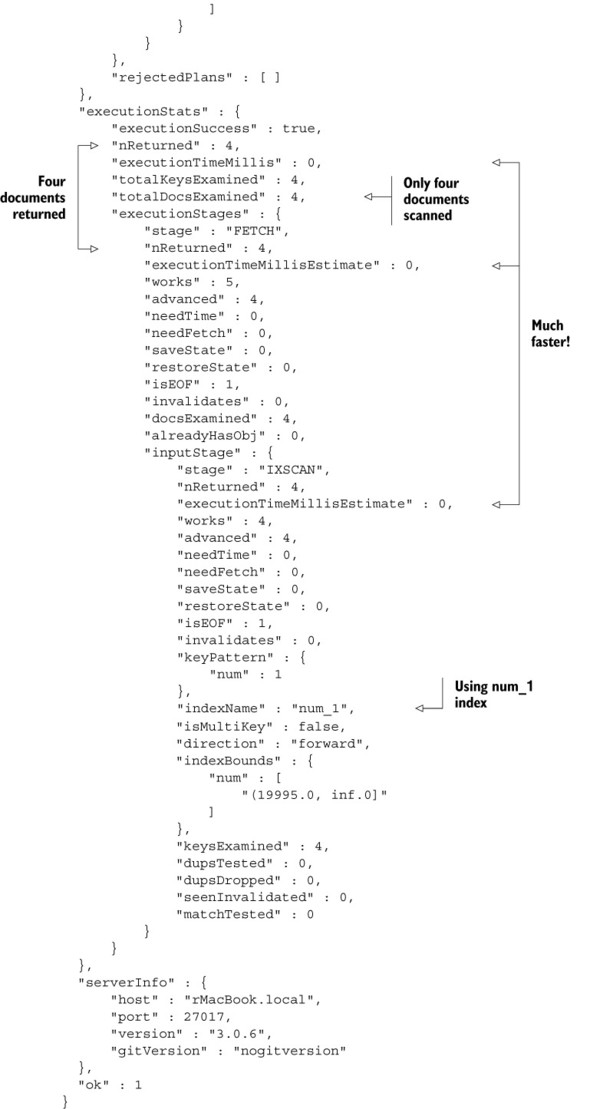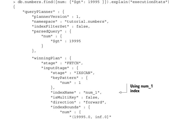 Listing 6.2. explain() output for an indexed query