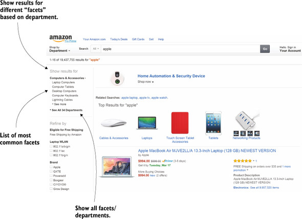 Figure 9.6. Search on Amazon using the term “apple” and illustrating the use of faceted search