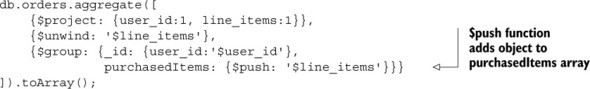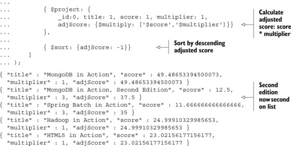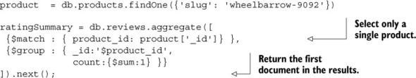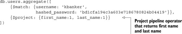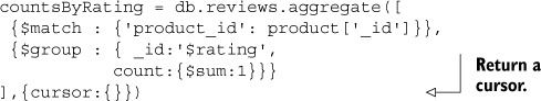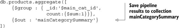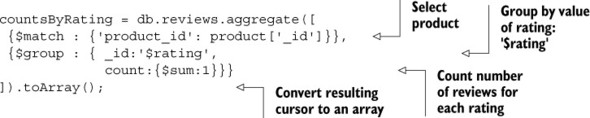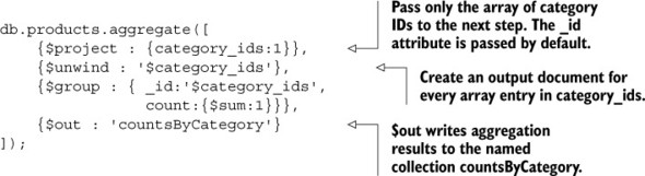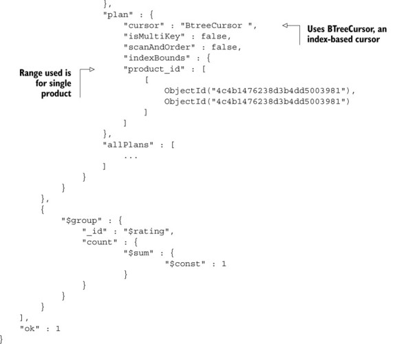 Listing 6.3. Example explain() output for aggregation framework