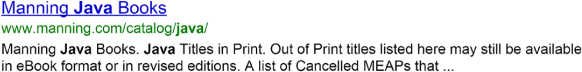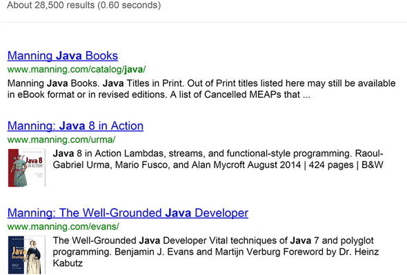 Figure 9.1. Search results from search for term “java” at www.manning.com