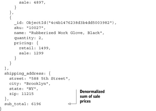 Listing 4.3. An e-commerce order, with line items, pricing, and a shipping address
