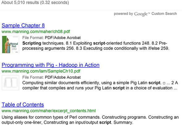 Figure 9.2. Results from searching for term “script” on www.manning.com