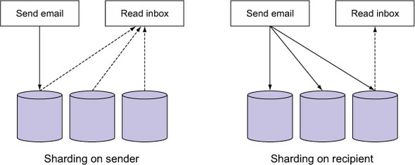 Figure 12.8. Overview of two ways an email application might be sharded