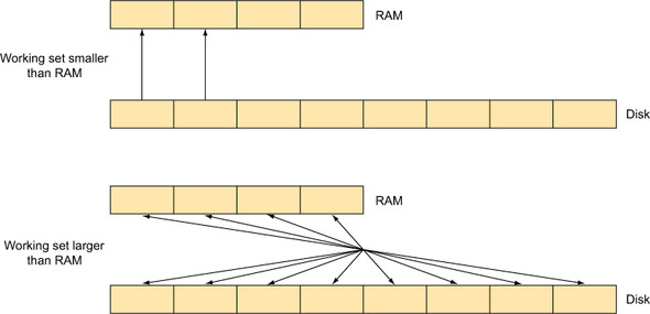 Figure 13.4. The impact on disk usage when the working set exceeds RAM