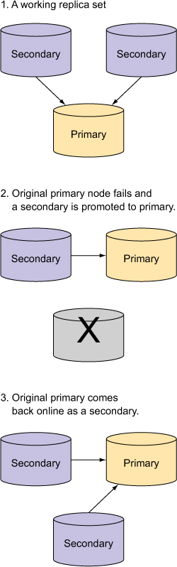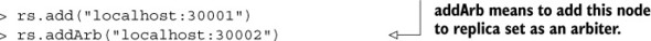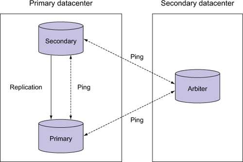 Figure 11.1. A basic replica set consisting of a primary, a secondary, and an arbiter