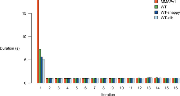 Figure 10.1. The read performance of MMAPv1 and WiredTiger