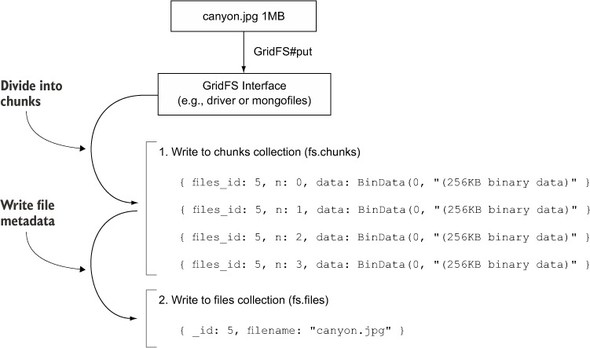 Figure C.1. Storing a file with GridFS using 256 KB chunks on a MongoDB server prior to v2.4.10