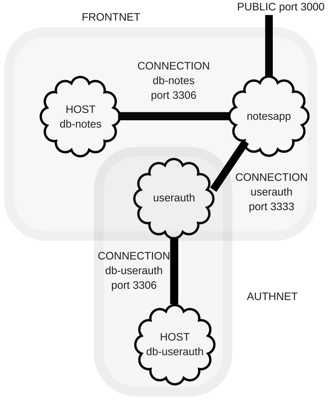 Something missing is an ingress rule for port 3306, the MySQL port. That's because the notes-public server will not host a MySQL server based on the placement constraints.