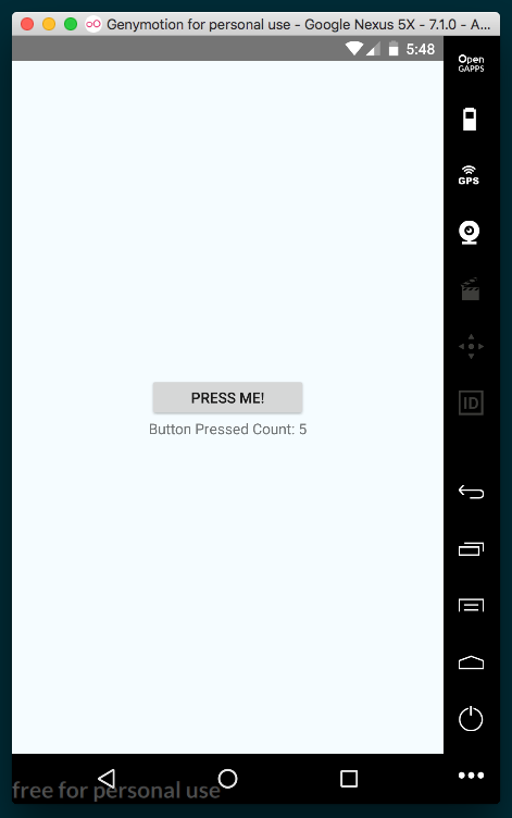 The code bundle for the book is also hosted on GitHub at https://github.com/warlyware/react-native-cookbook. In case there's an update to the code, it will be updated on the existing GitHub repository.