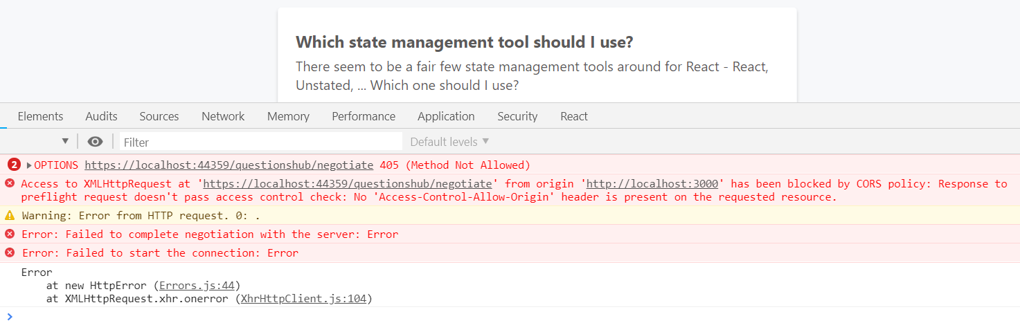 A CORS policy is required because the frontend and backend were hosted in different domains.