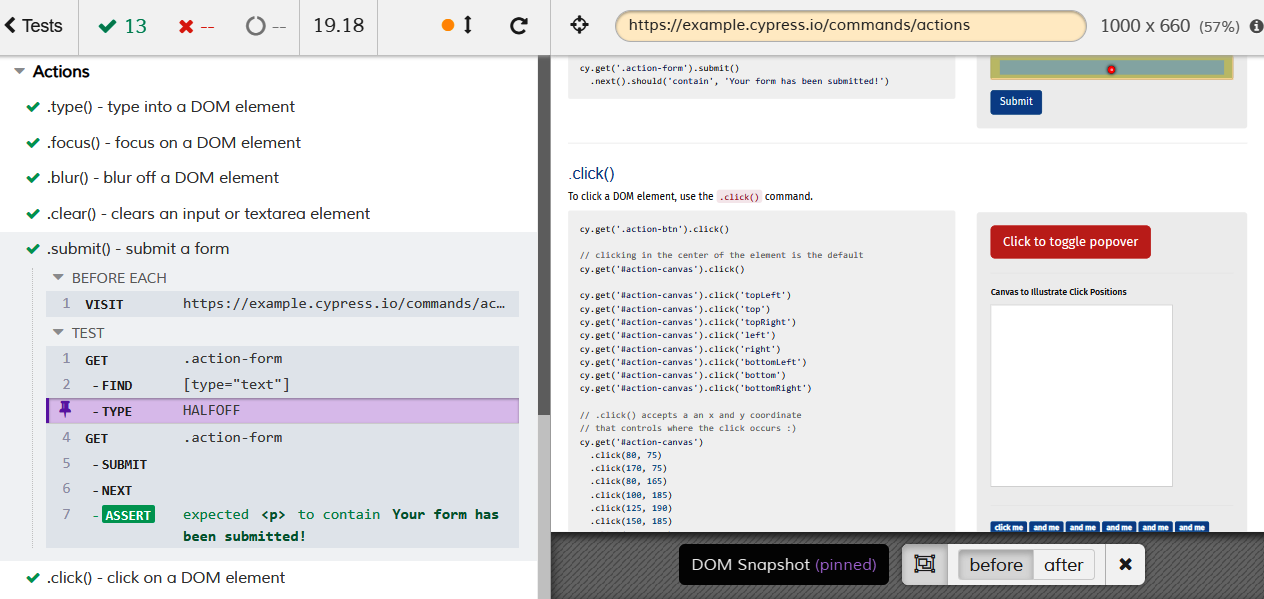 The first command will check that the page renders Loading... on the initial render. The second command will wait until the Loading... disappears—that is, the data has been fetched.