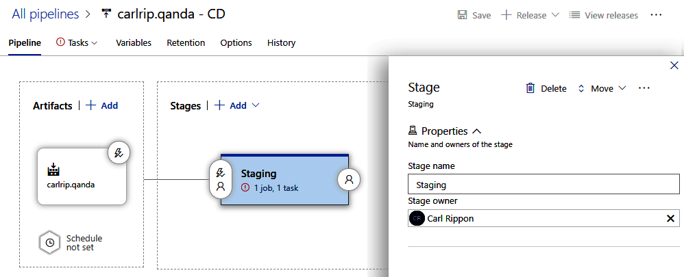 Chapter 15, Implementing CI and CD with Azure DevOps, introduces Azure DevOps, before stepping through the creation of a build pipeline that automatically triggers when code is pushed to a source code repository. This chapter then examines setting up a release pipeline that deploys the artifacts from the build into Azure.