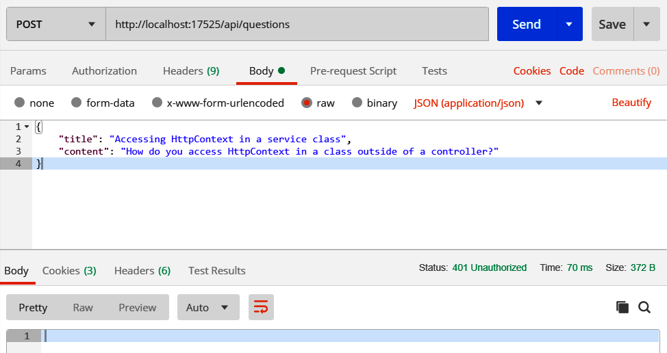 When we try to access protected resources in our ASP.NET Core backend, we receive HTTP status code 401. What is the problem here?