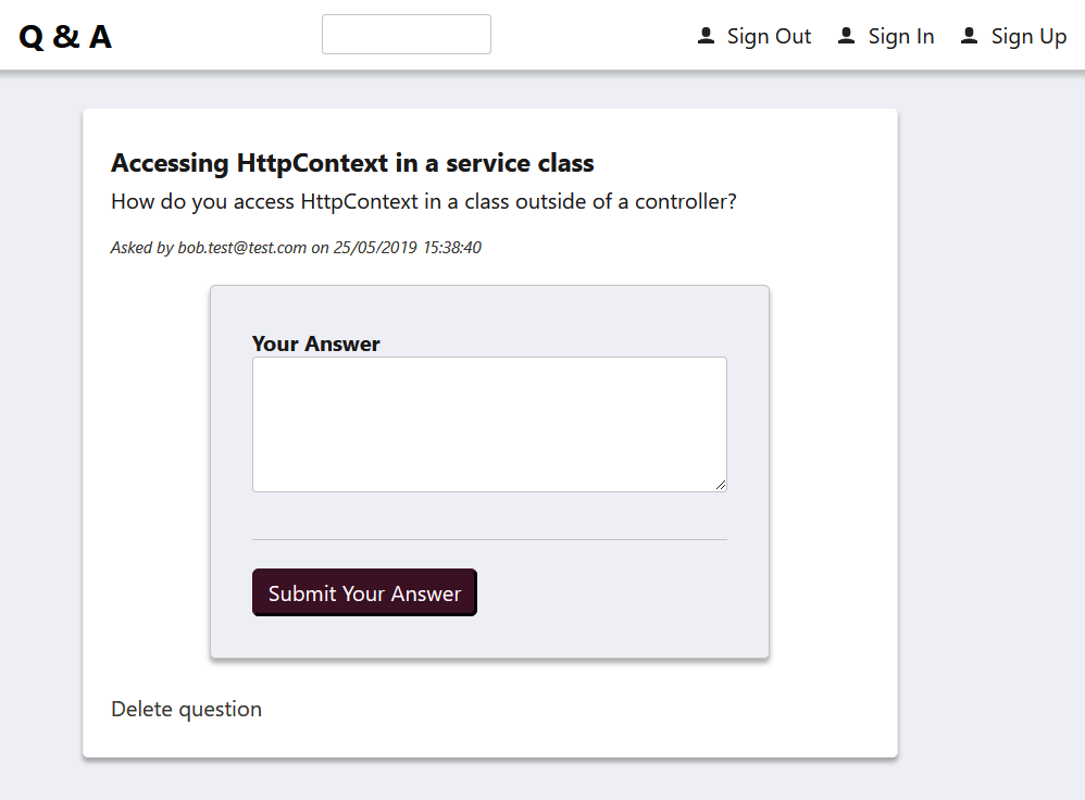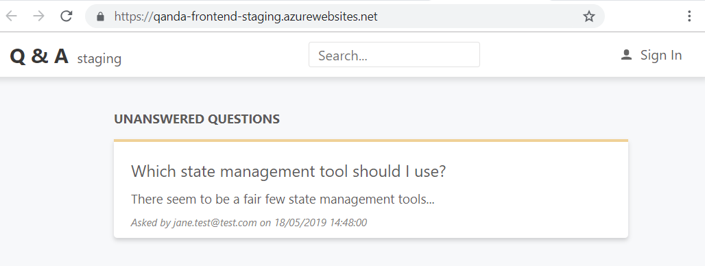 We wouldn't be able to deep-link into our app. For example, putting the path to a question, such as https://qandafrontend.z19.web.core.windows.net/questions/1, directly in the browser's address bar and pressing Enter will result in a Page not found error being returned.