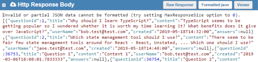 The problem is that the response body cannot be accessed directly in the response like this. Instead, the response's json asynchronous method should be used: