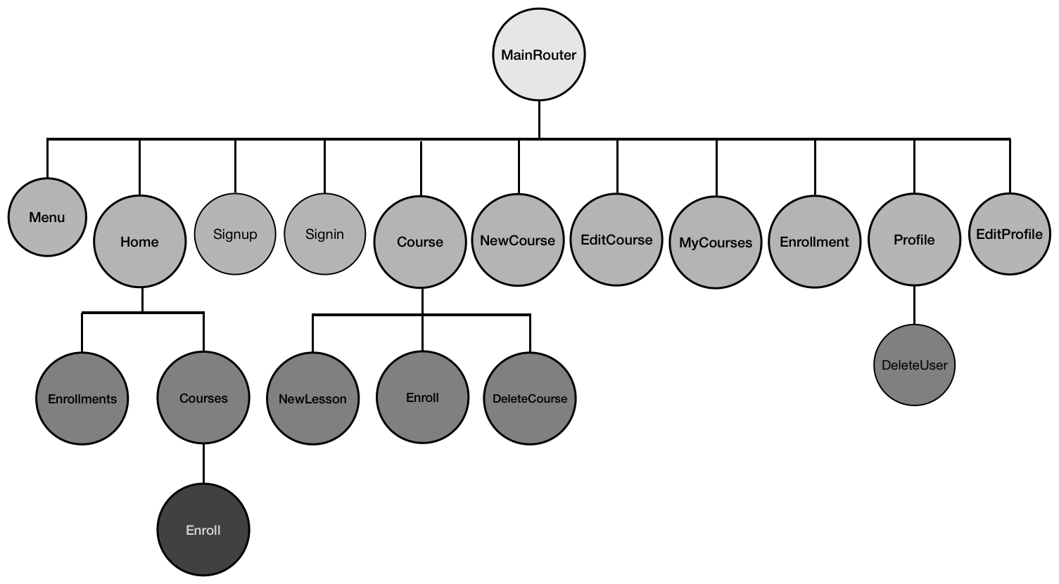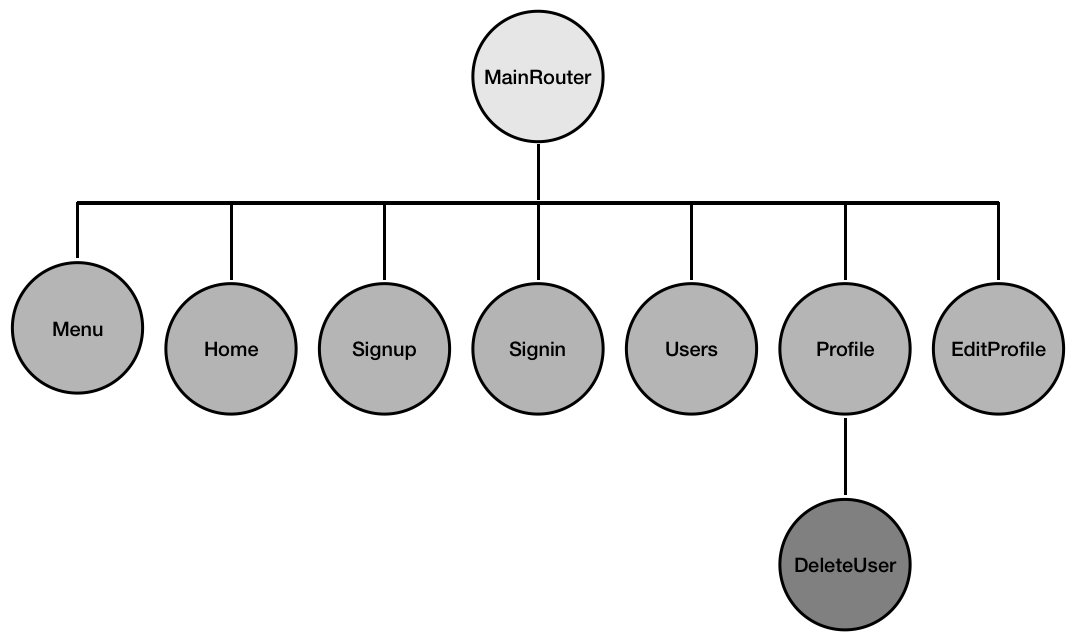 If these new components need to be rendered at individual routes, update the MainRouter.js code to add new routes that load these components at given URL paths. Then, these URLs can be used as links to load the components from other views in the application, or directly by visiting the URL from the browser address bar.