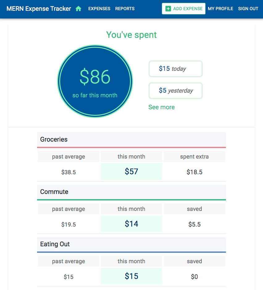 Chapter 10, Integrating Data Visualization with an Expense Tracking Application, focuses on using MERN stack technologies along with Victory—a charting library for React—to easily integrate data visualization features in a full-stack application. We will extend the MERN skeleton application to build an expense tracking application that will incorporate data processing and visualization features for expense data recorded by a user over time.