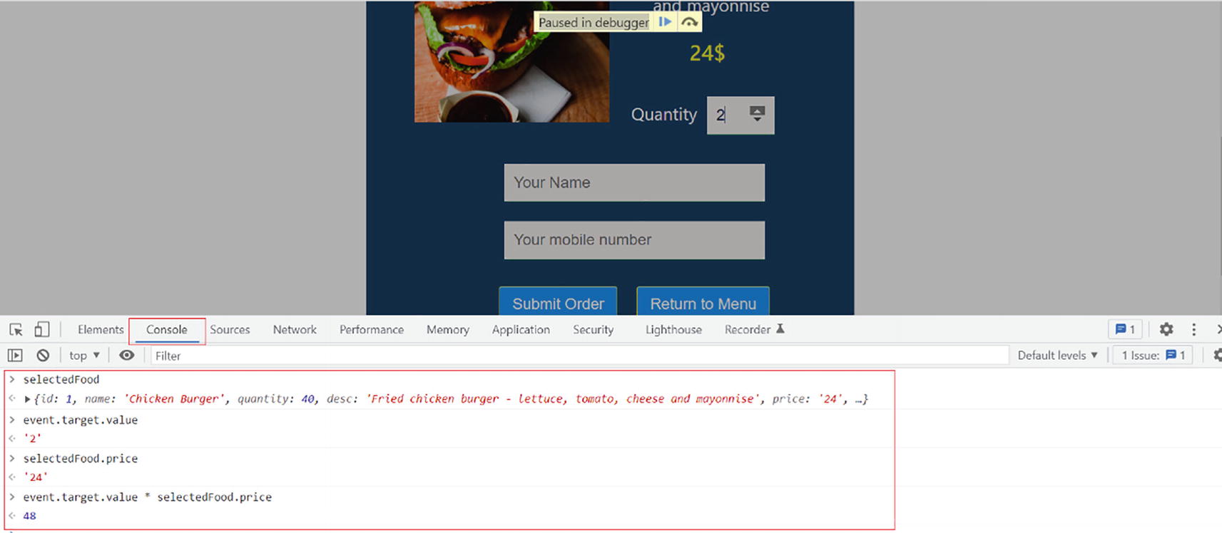 An object contains properties. Each property has a key and a value. In the preceding example, the object book has three properties. We define each property as a key-value pair. For example, bookname: "Just React" is a property of the object. bookname is the key, and Just React is the value of the specified property. An object can contain properties of any type. The properties of the object in this example are of both string and number types.