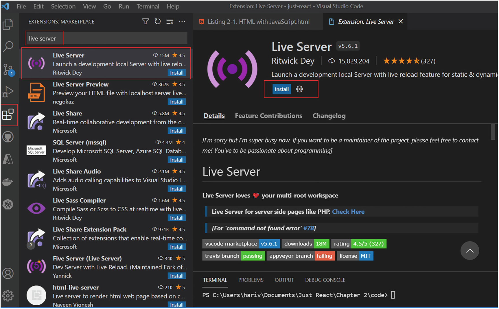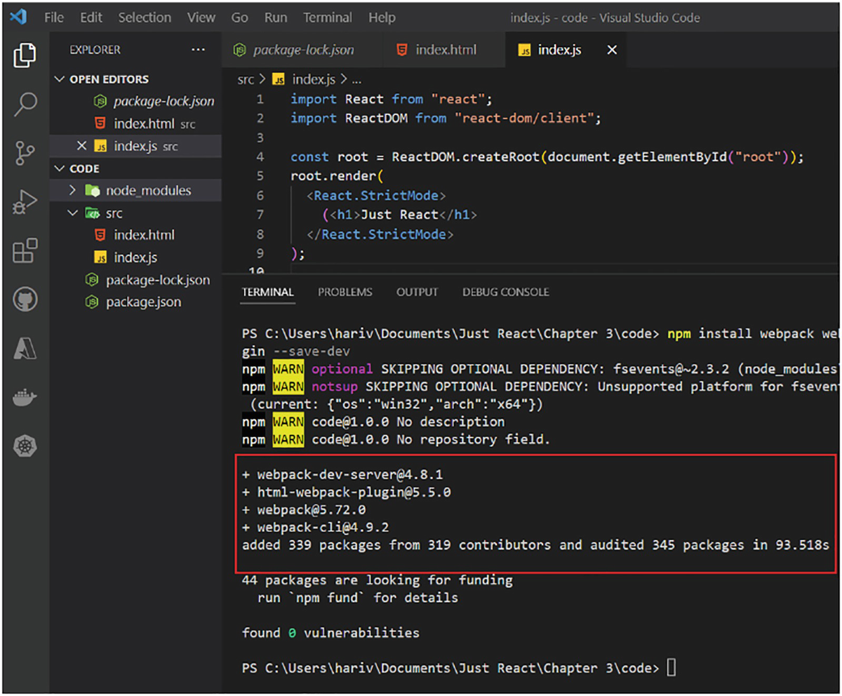The final code at the end of each chapter is available in the respective chapter section in the repository. You can access the repository via the book’s product page, https://github.com/Apress/Just_React. All the listings mentioned in this chapter are located under Chapter 1 ➤ Listings.