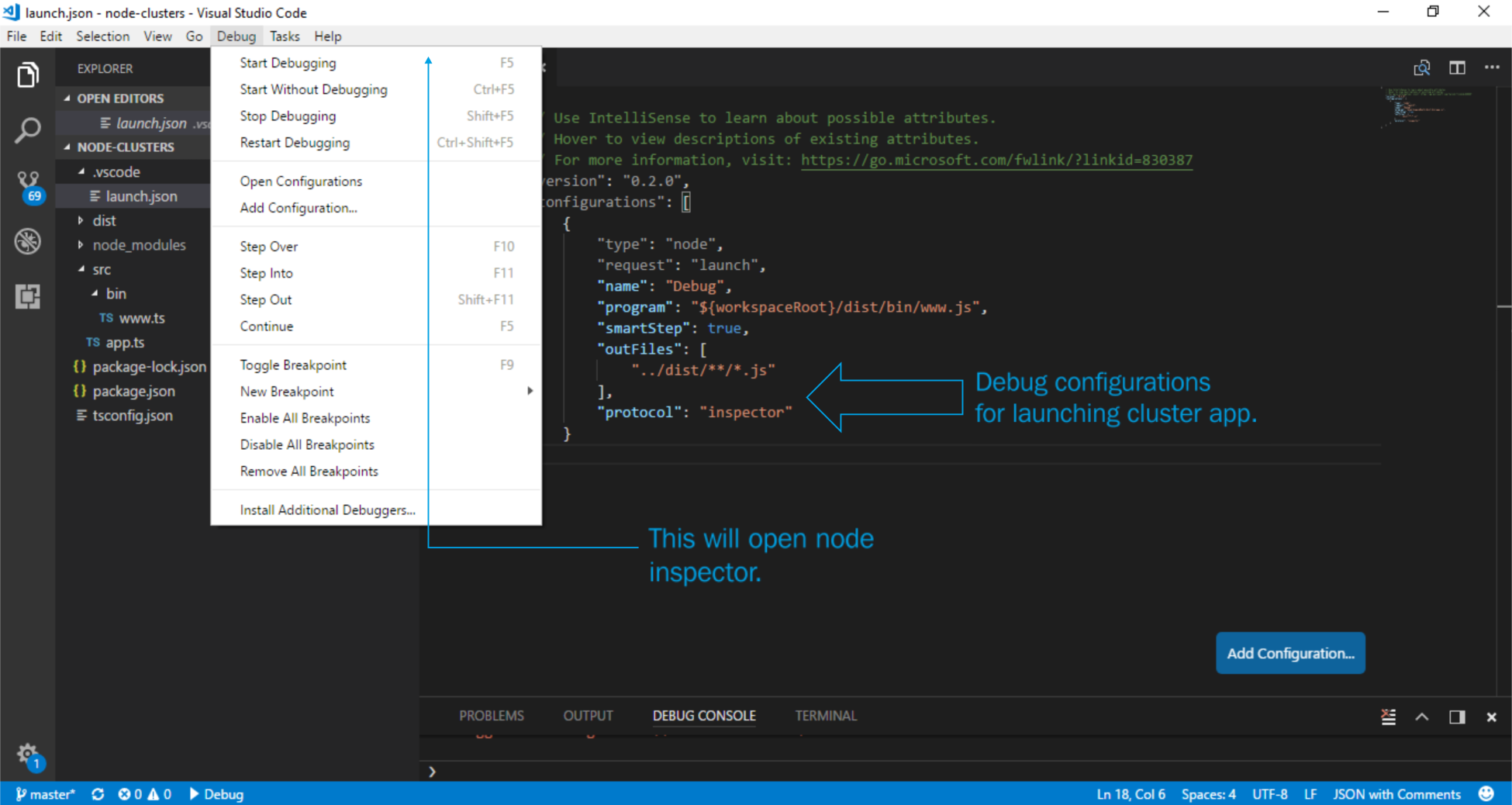 Chapter 2, Gearing up for the Journey, introduces necessary concepts in Node.js and TypeScript. It begins with preparing our development environment. It then talks about basic TypeScript essentials such as types, tsconfig.json, writing your custom types for any node module, and the Definitely Typed repository. Then, we move to Node.js, where we write our application in TypeScript. We will learn about some essentials such as Node clusters, Event Loops, multithreading, and async/await. Then, we move to writing our first hello world TypeScript microservice.